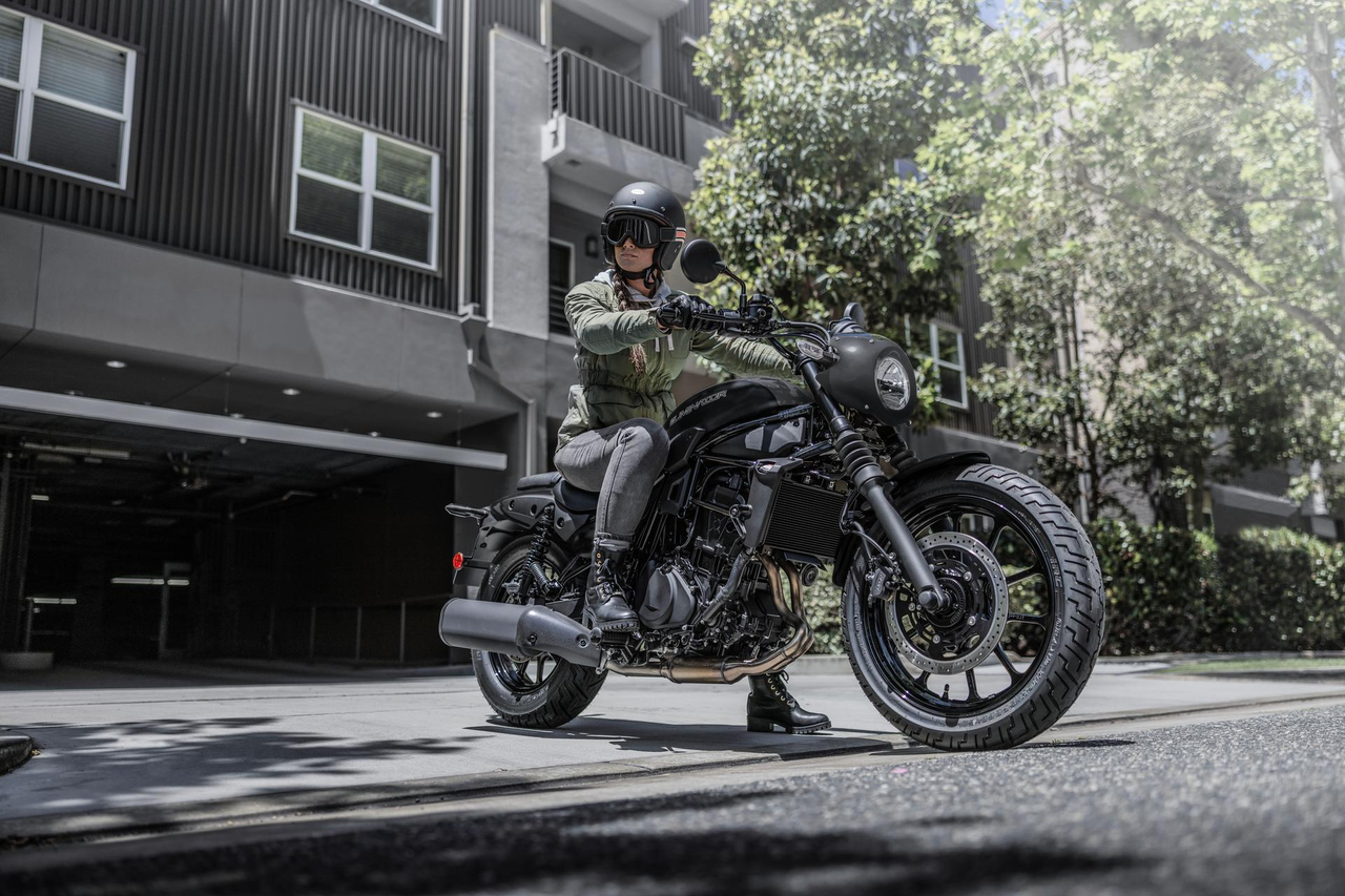 Okrem toho, že dvojité zadné tlmiče prispievajú ku komfortu jazdy a prirodzenému ovládaniu, pripomínajú štýl tradičných motocyklov Kawasaki.