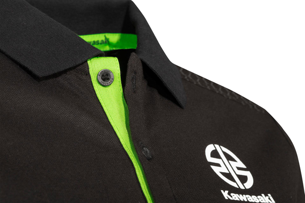 Polo tričko s gombíkmi Otváranie na gombík Oblasti ramien a podpazušia potlačené šedou hexogénovou potlačou Bočné rozparky so zelenou kontrastnou páskou Pique tkanina 95 % bavlna 5 % elastan