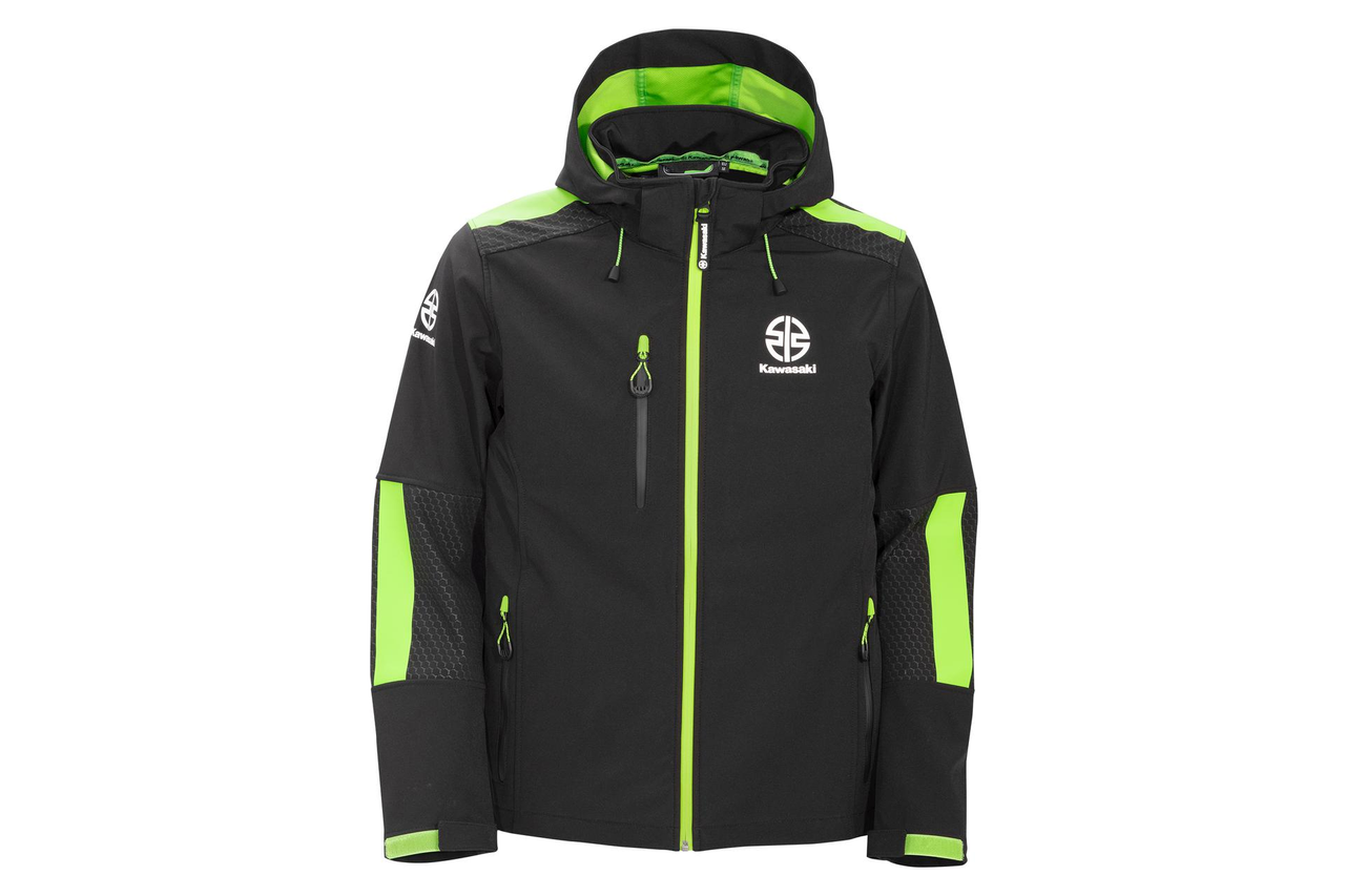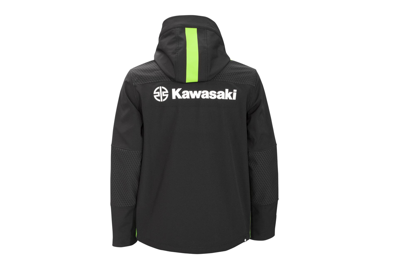 Bunda softshell s odopínateľnou kapucňou, vnútornými a vonkajšími vreckami na zips a manžetou rukávov nastaviteľnou pomocou suchého zipsu.