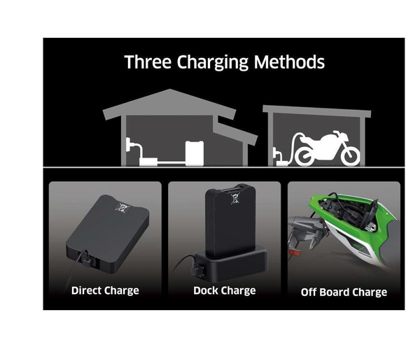 Pri pripojení k motocyklu prostredníctvom sady nabíjacieho kábla s konektorom môže jedna nabíjačka nabíjať obe batérie súčasne vďaka systému riadenia batérií v motocykli.