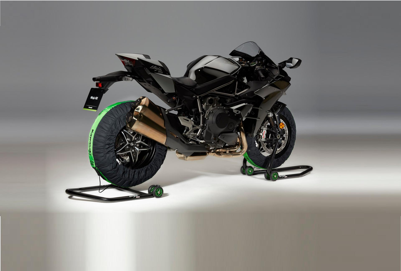 Sady ohrievačov pneumatík podobné tým, ktoré používa tím superbike KRT. Ohrievače pneumatík s technológiou ohrevu z uhlíkových vlákien. Táto technológia umožňuje rýchle ohriatie pneumatiky a ráfika bez lokálneho prehriatia a s konštantnou teplotou. Bočné strany ohrievača pneumatík siahajú ďaleko za okraj ráfika, čím udržujú teplo vo vnútri. Týmto spôsobom sa stabilizuje tlak v pneumatike. Vysoko presný termostat zabezpečuje cieľovú teplotu 80–85 °C.