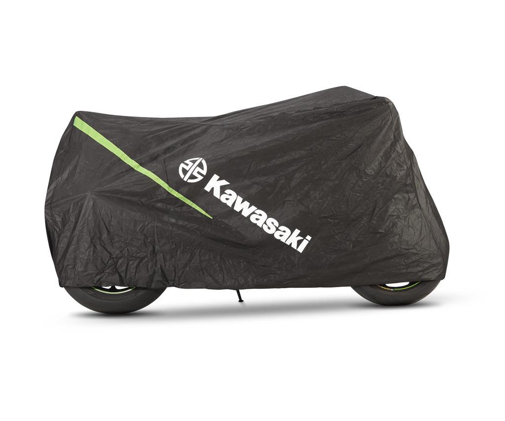 Plachta na motocykel vyrobený z priedušného, odolného netkaného ripstop materiálu. Špecifický pre Kawasaki so zelenými prvkami vo forme včelích plástov. Ľahko dostupná uzamykateľná pracka. 100 % polyester. S viacúčelovou taškou na uloženie.